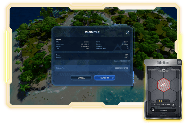 The Tycoon operates by building their own DeFi empire. As a Tycoon, you will invest funds to claim land tiles with resources, acquire Title Deed and Blueprint NFTs, construct buildings, harvest resources, and produce goods and services. The Tycoons' strategy is as follows: